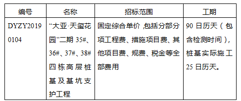 大亚天玺花园二期四栋高层桩基及基坑支护项目招标公告