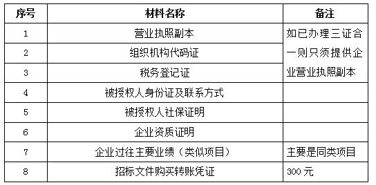2、 凡有意向参加投标者,请在上述期间内按下表提供报名资料,相关证明文件的原件如无法提供原件则提供复印件加盖公司公章,投标人须将上述资料的扫描件发邮件至招标联系人处进行报名。