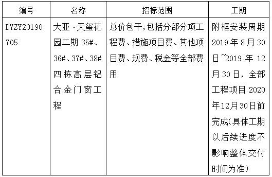大亚·天玺花园二期四栋高层铝合金门窗工程项目招标公告