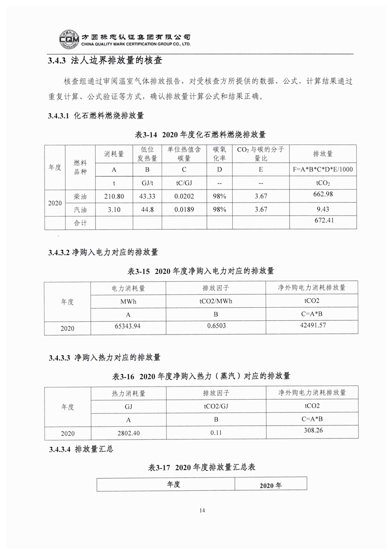 大亚人造板集团有限公司2020年度温室气体排放核查报告自主公示